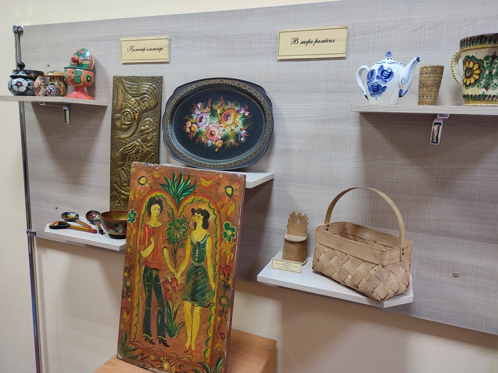 Сиқырлы мерекелер кезінде Лисаков музейінде «Қолөнер әлемінде» шағын көрмесі ашылды. Келушілер назарына бірегей халық қолөнері: гжель және хохлома шеберлерінің бұйымдары, городец кескіндеме, сырланған науа және ағаш ыдыстар ұсынылады. Сондай-ақ Беларусь пен Ресейде әртүрлі материалдардан қолдан жасалған ХХ ғасырдың бірінші жартысындағы ойыншықтар да қойылған. Лисаков узейінің коллекциясында заттар атақты археолог, Лисаков қаласының Құрметті азаматы Е.Р.Усманованың коллекциялық қызметінің арқасында пайда болды. Тапсырушылар қатарында И.Лунков, Е.Панченко (Мәскеу) бар. Көрмедегі жәдігерлер саны аз, бірақ олардың әрқайсысы халық өнерінің қайталанбас сұлулығымен қуантады.