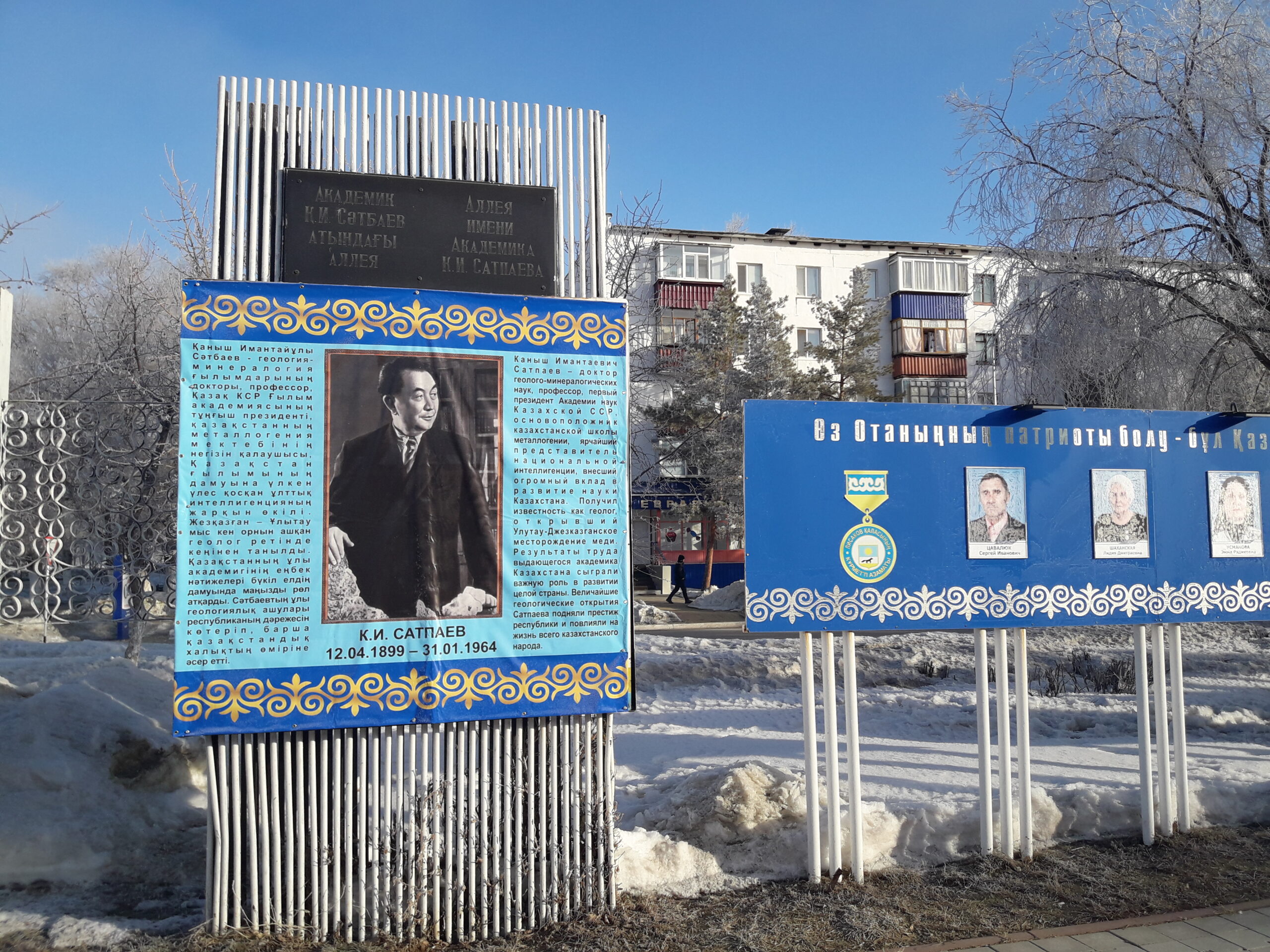 В 1999 году в Лисаковске академику Сатпаеву была установлена памятная доска, его именем названа аллея в центре города.