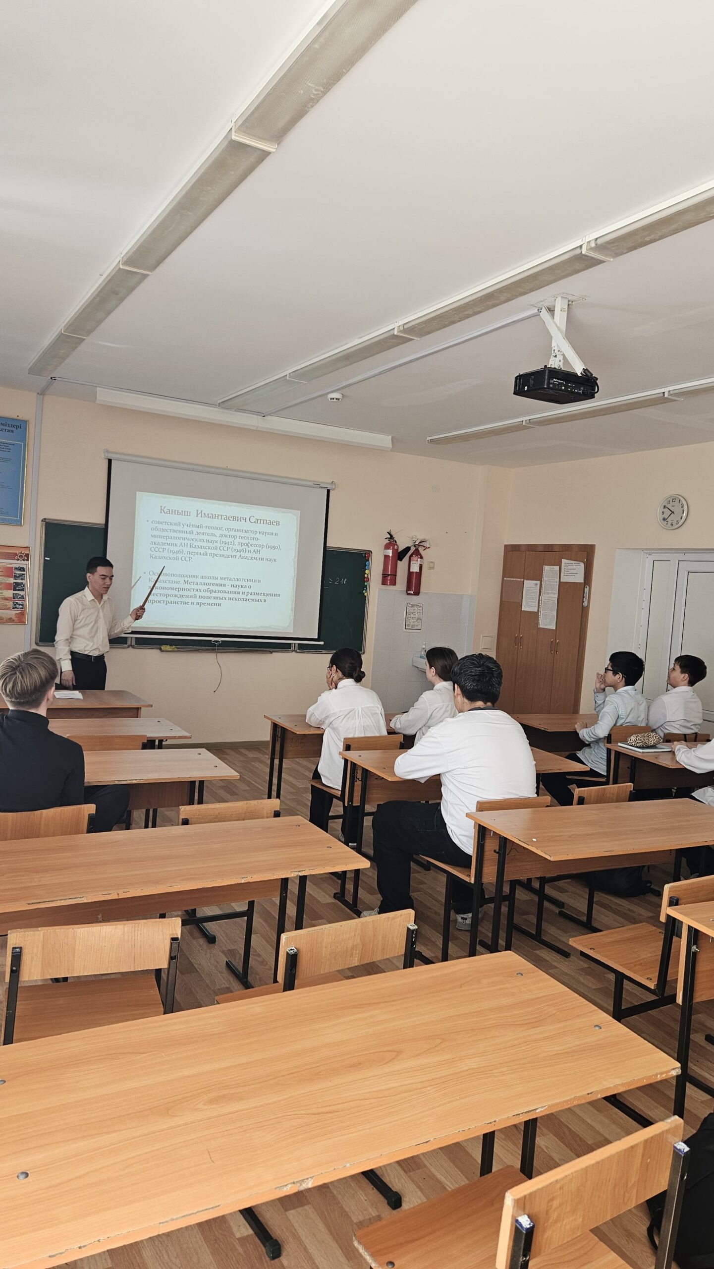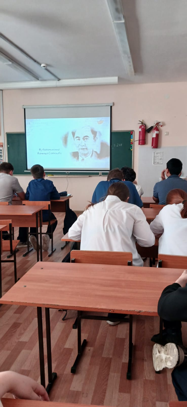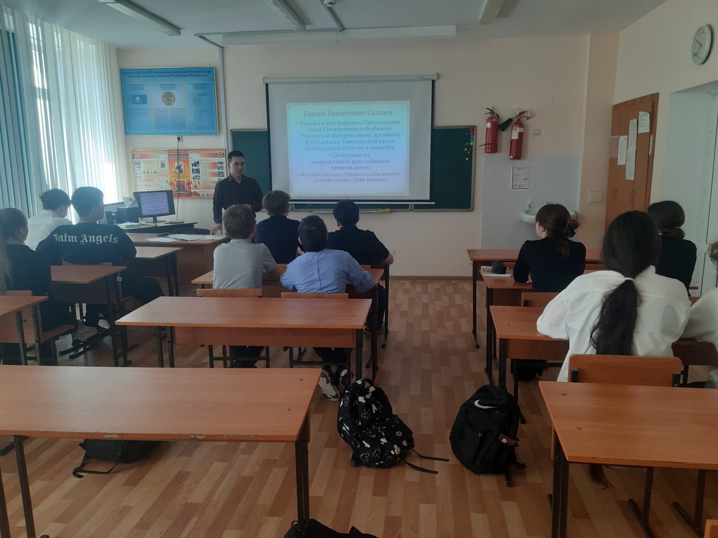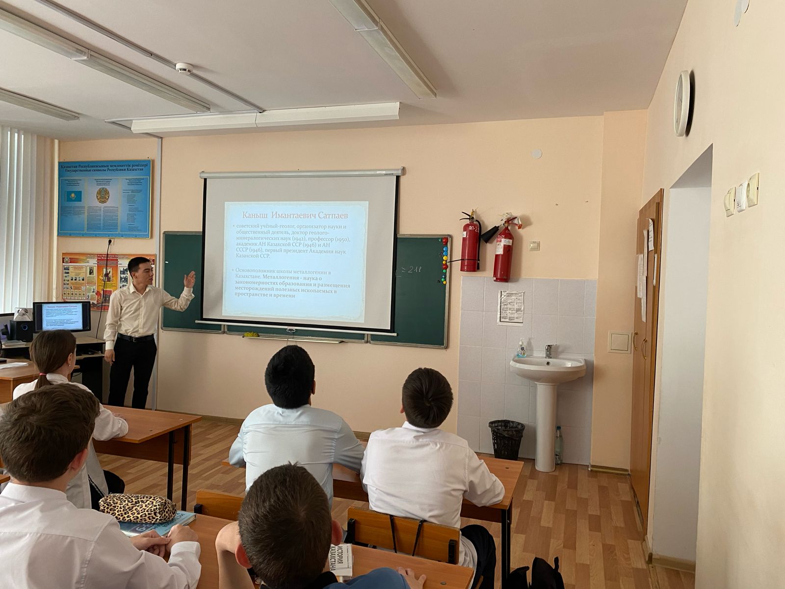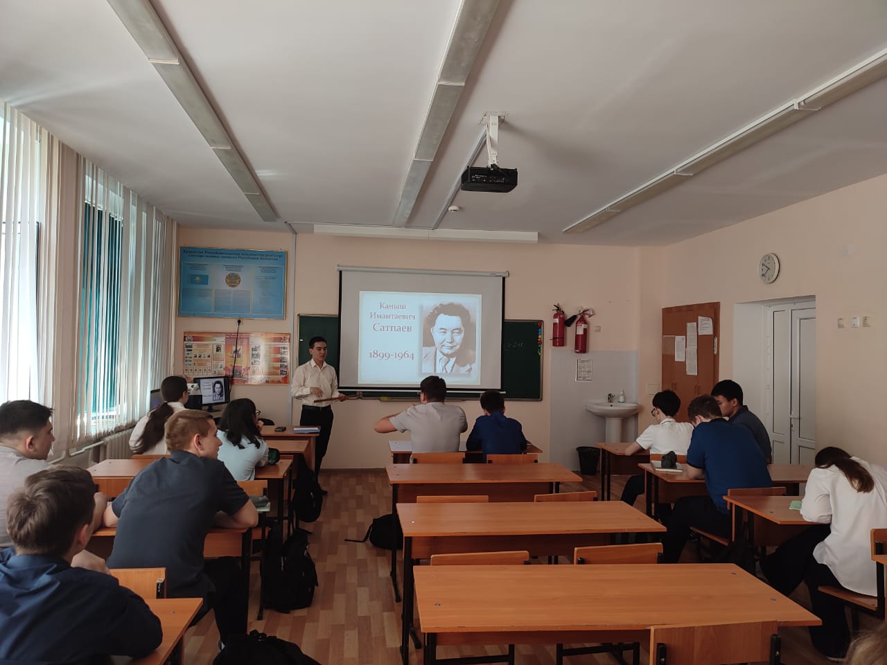 К 125-летию К.И.Сатпаева сотрудники Лисаковского музея проводят лекции о нём не только в музее, но и в школе. Слушателями стали учащиеся школы-гимназии отдела образования г.Лисаковска. На лекции демонстрируются фрагменты фильма «Тайны и судьбы великих казахов» (автор – М.Бекбаева), презентация о биографии и деятельности К.И.Сатпаева