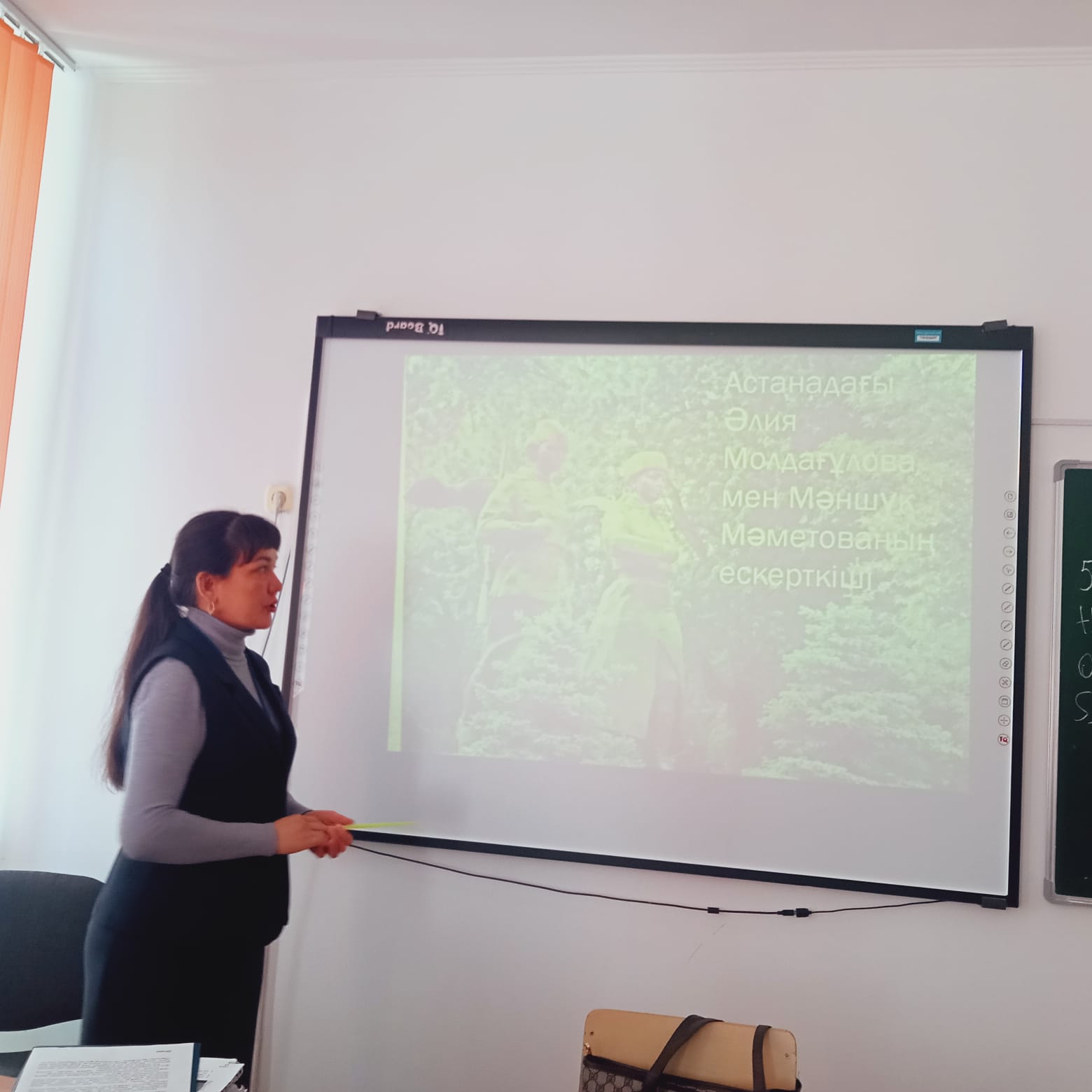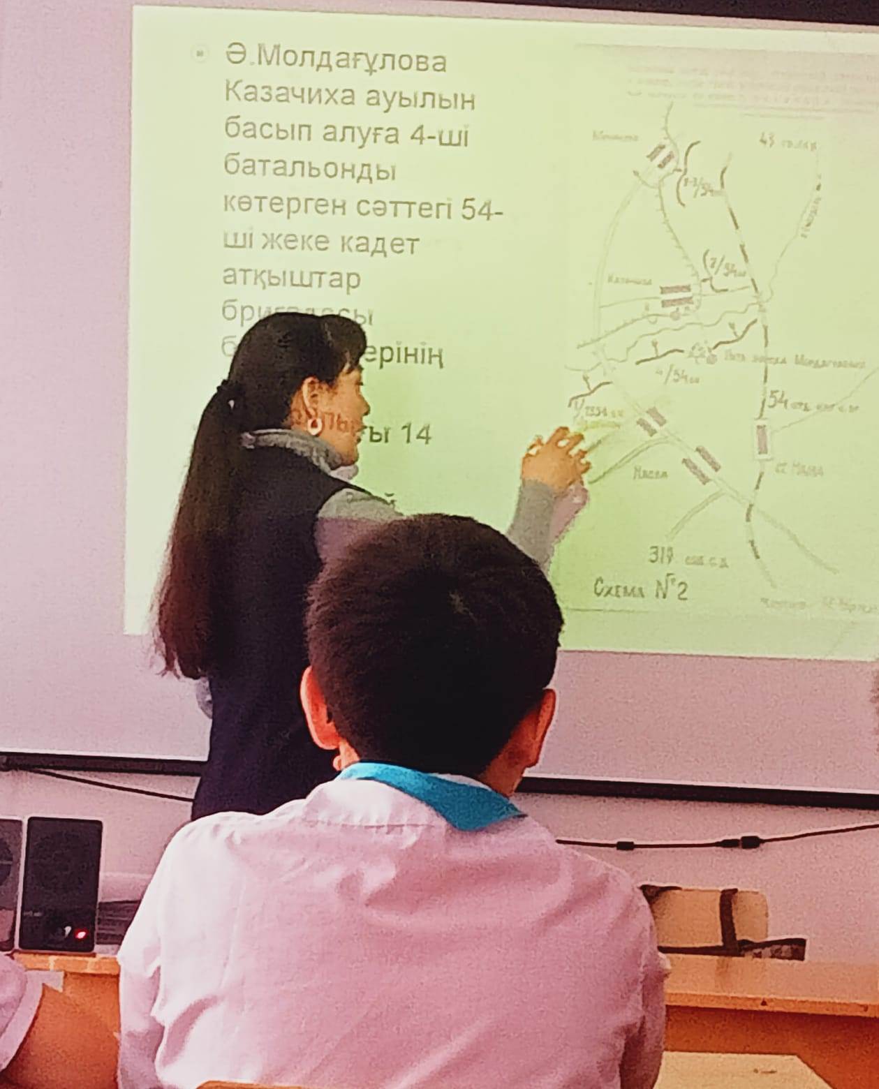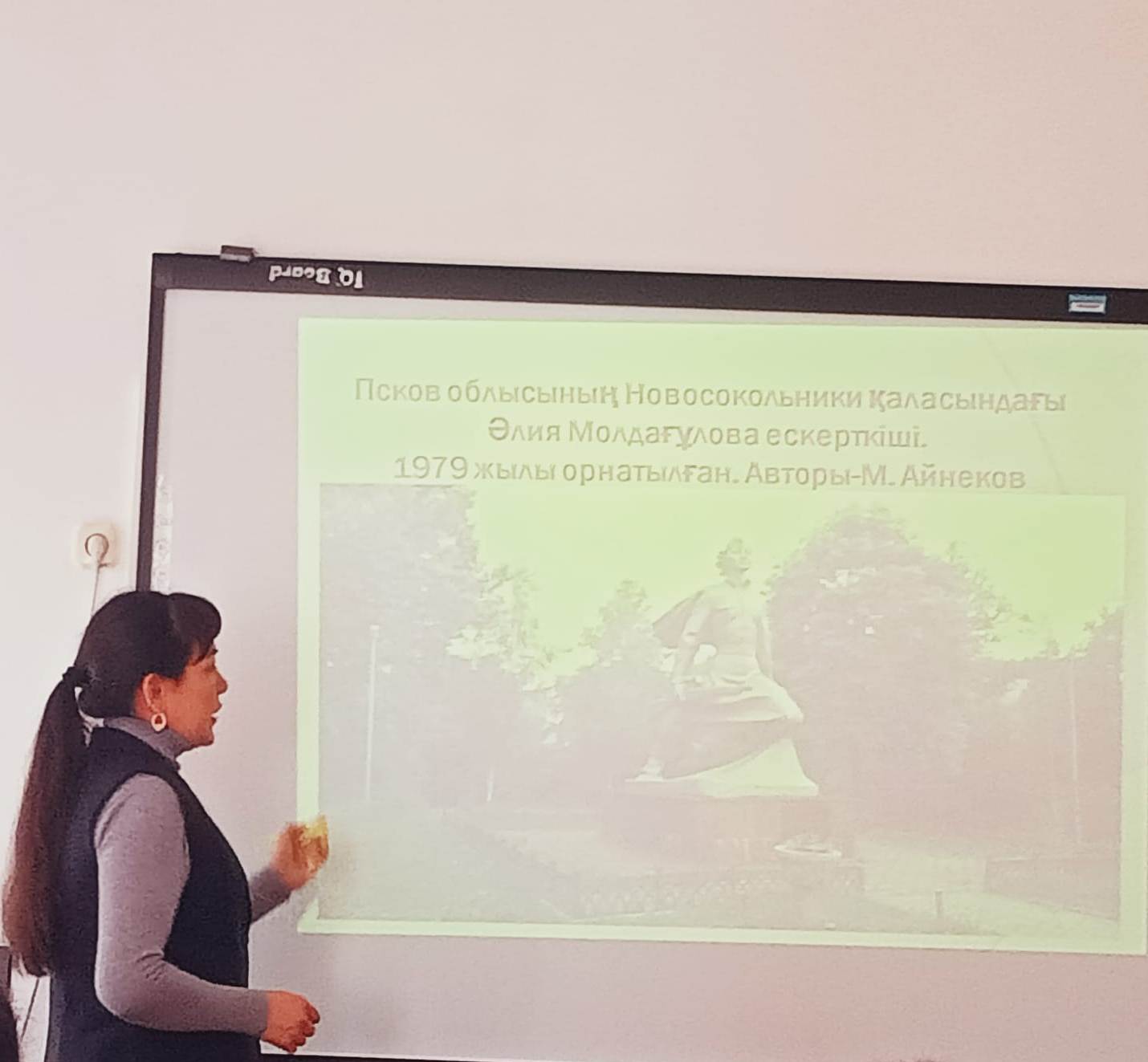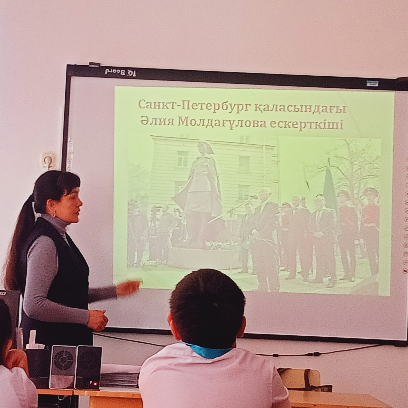 6 мая 2024 года в школе имени Абая отдела образования г.Лисаковска состоялась лекция о подвиге Героя Советского Союза Алии Молдагуловой на государственном языке. Заинтересованными слушателями стали учащиеся 6 класса, они прослушали рассказ экскурсовода Лисаковского музея О.К.Искаковой, увидели фрагменты фильма об Алие Молдагуловой.
