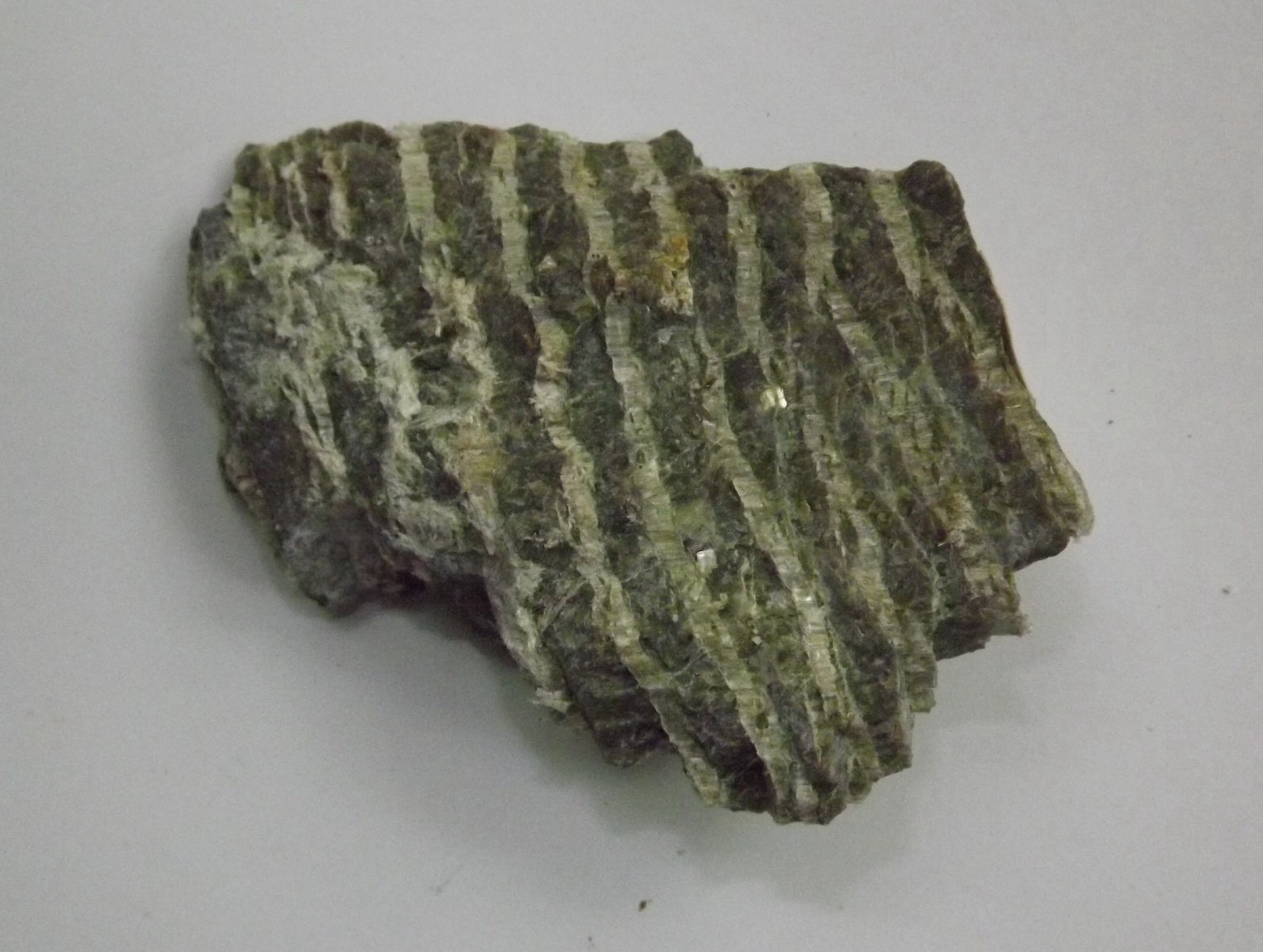 Хризотил-асбест – это тонковолокнистый белый или зеленовато-желтый минерал (Mg6 (OH)8[SiO4O10]) c шелковистым блеском, образующий прожилки в ультраосновных породах, преимущественно в перидотитах. Прожилки имеют поперечно-волокнистое строение с длиной волокон от долей миллиметра до 5–6 см (изредка до 16 см) толщиной менее 0,0001 мм. Огнеупорный строительный материал. Замечательным свойством этого минерала является способность сминаться и распушаться в тонковолокнистую массу, подобную льняной или хлопковой, пригодной для изготовления несгораемых тканей.