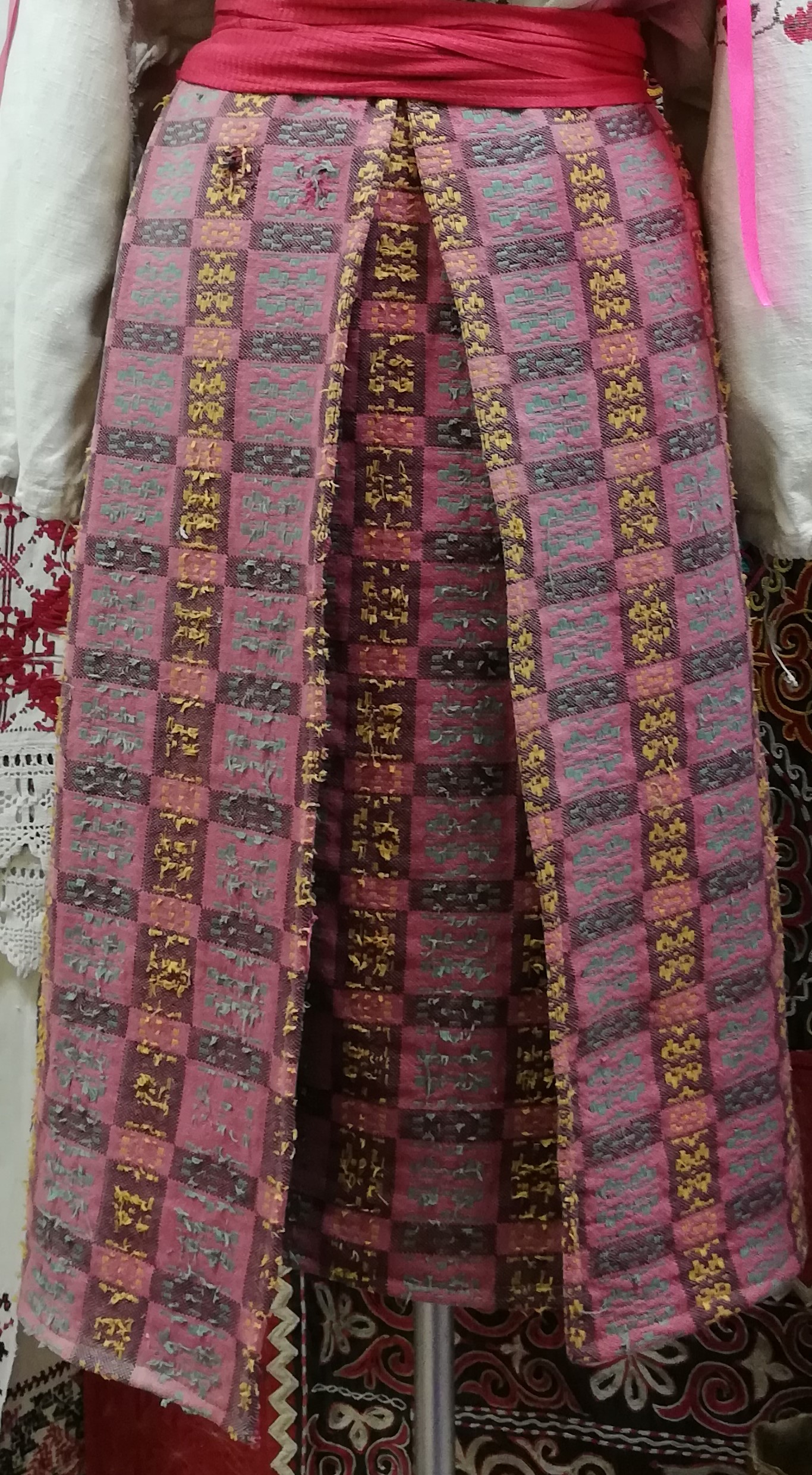 Плахта (реплика) изготовлена из клетчатого гобелена, сшита по традиционному крою народного костюма. Изготовлена по заказу музея в 2014 году. Автор – Н. Е. Жиляева.