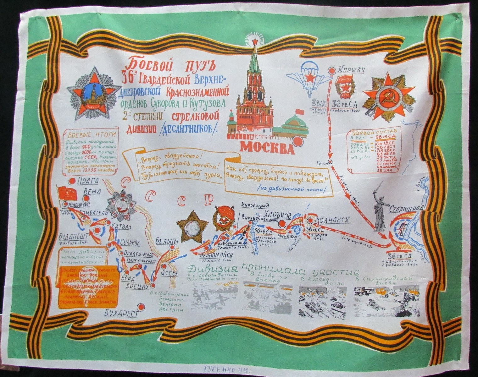 Карта «Боевой путь 36 гвардейской Верхнеднепровской Краснознаменной орденов Суворова и Кутузова II степени стрелковой дивизии»