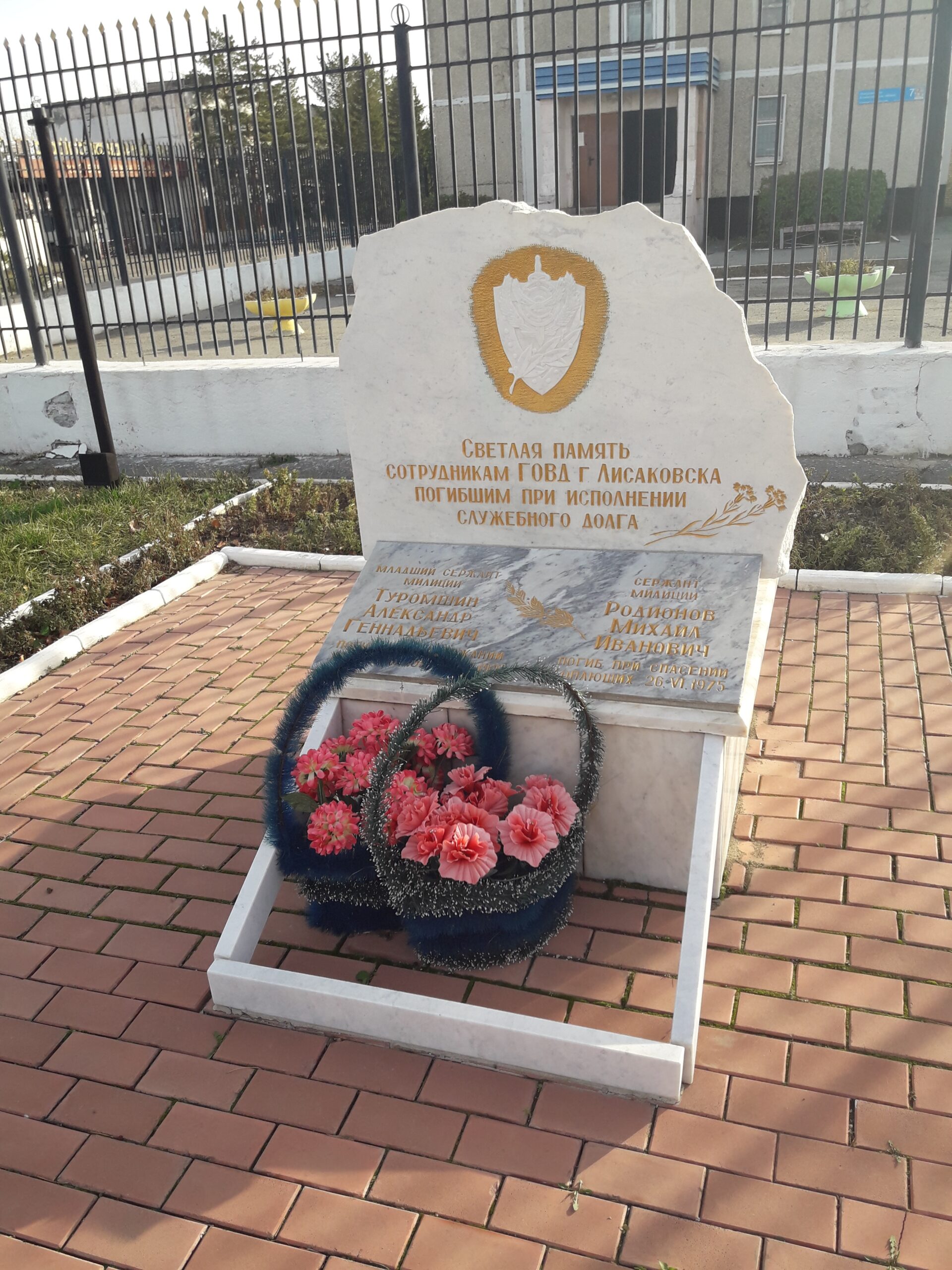 В Лисаковском ГОВД установлена мемориальная Доска в память о милиционере Михаиле Ивановиче Родионове, ценой своей жизни спасшего двух человек