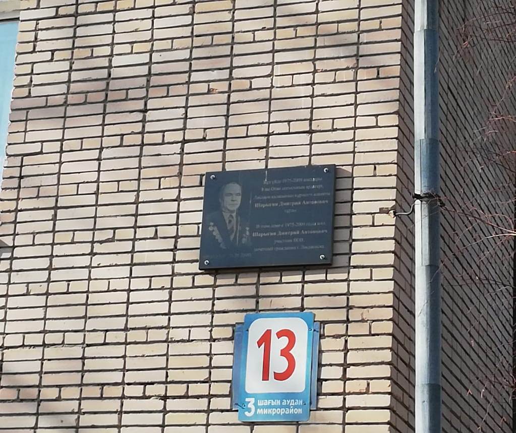 Ұлы Отан соғысына қатысушы, Лисаков қаласының Құрметті азаматы Д.А.Шарыгинге мемориалдық тақта