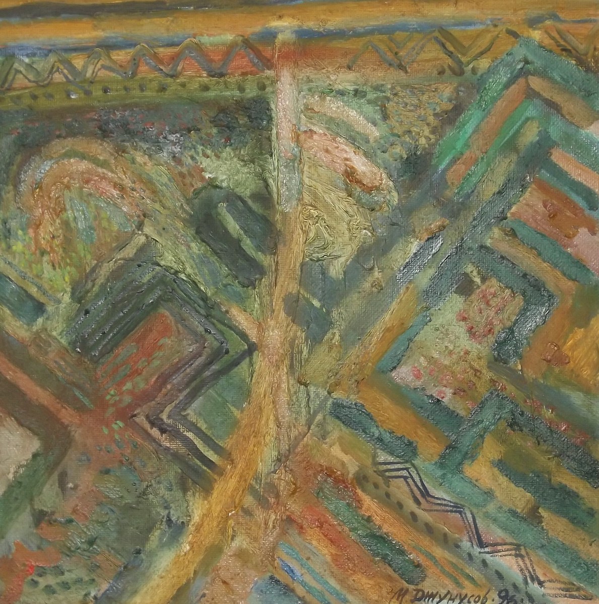 1950-ші жылдары Қарағанды қ. Кенеп, майлы бояу, Кескіндеме 51,0 х 51,0 см Тапсырған: Н.И. Иванина, Қарағанды қ.
