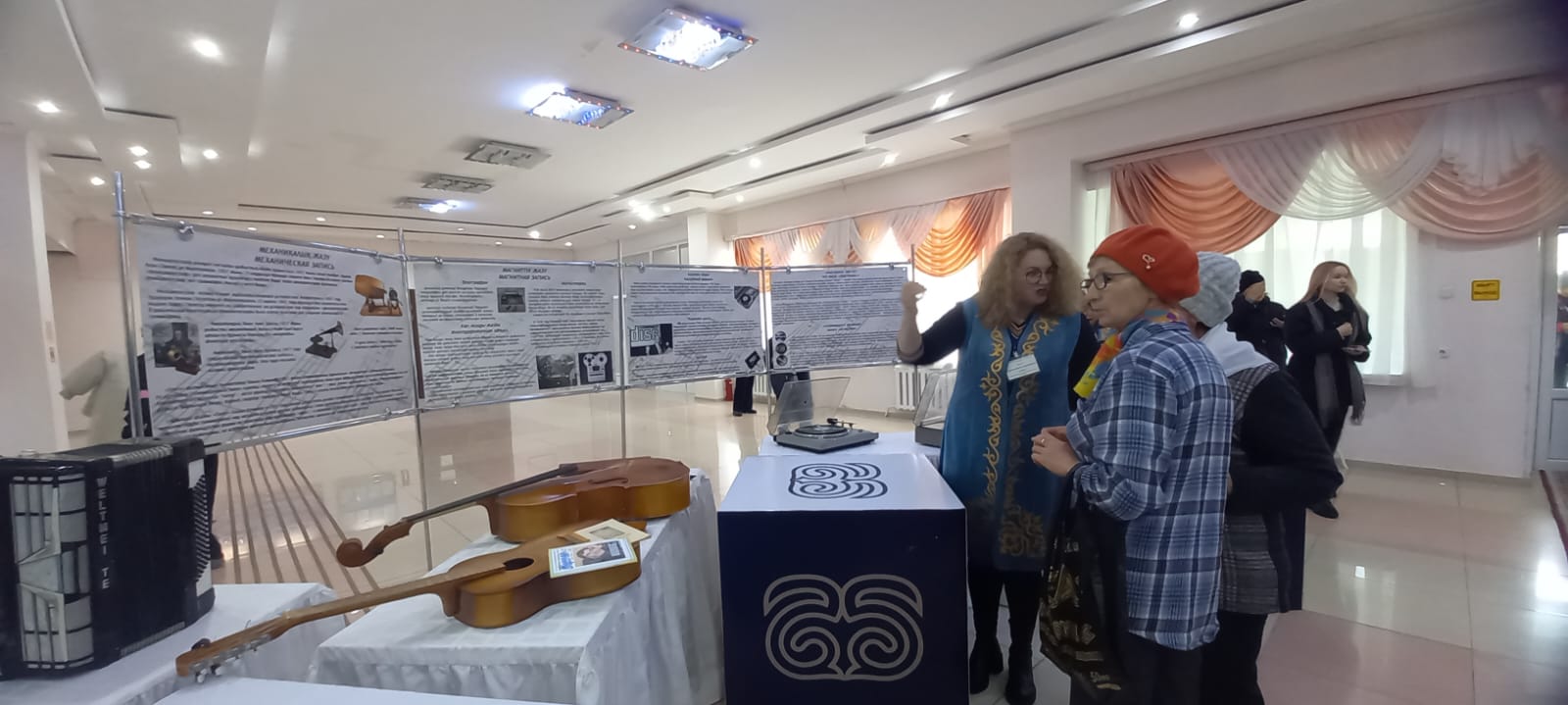 На выставке экспонировались музыкальные инструменты второй половины  ХХ века, проигрыватели с пластинками, магнитофон «Романтик»,  переносной радиоприемник «Россия».  Экскурсии по выставке проводились на государственном и русском языках,  получить дополнительную информацию посетители могли,  прочитав  пояснительные тексты на стендах.