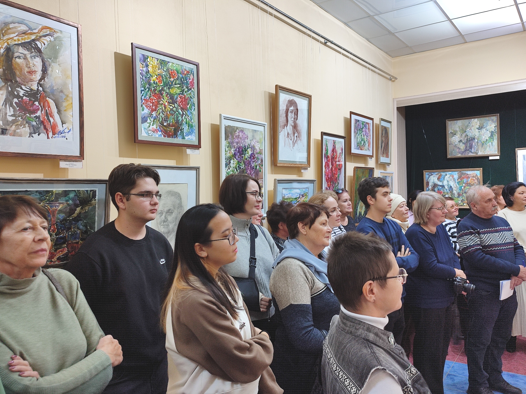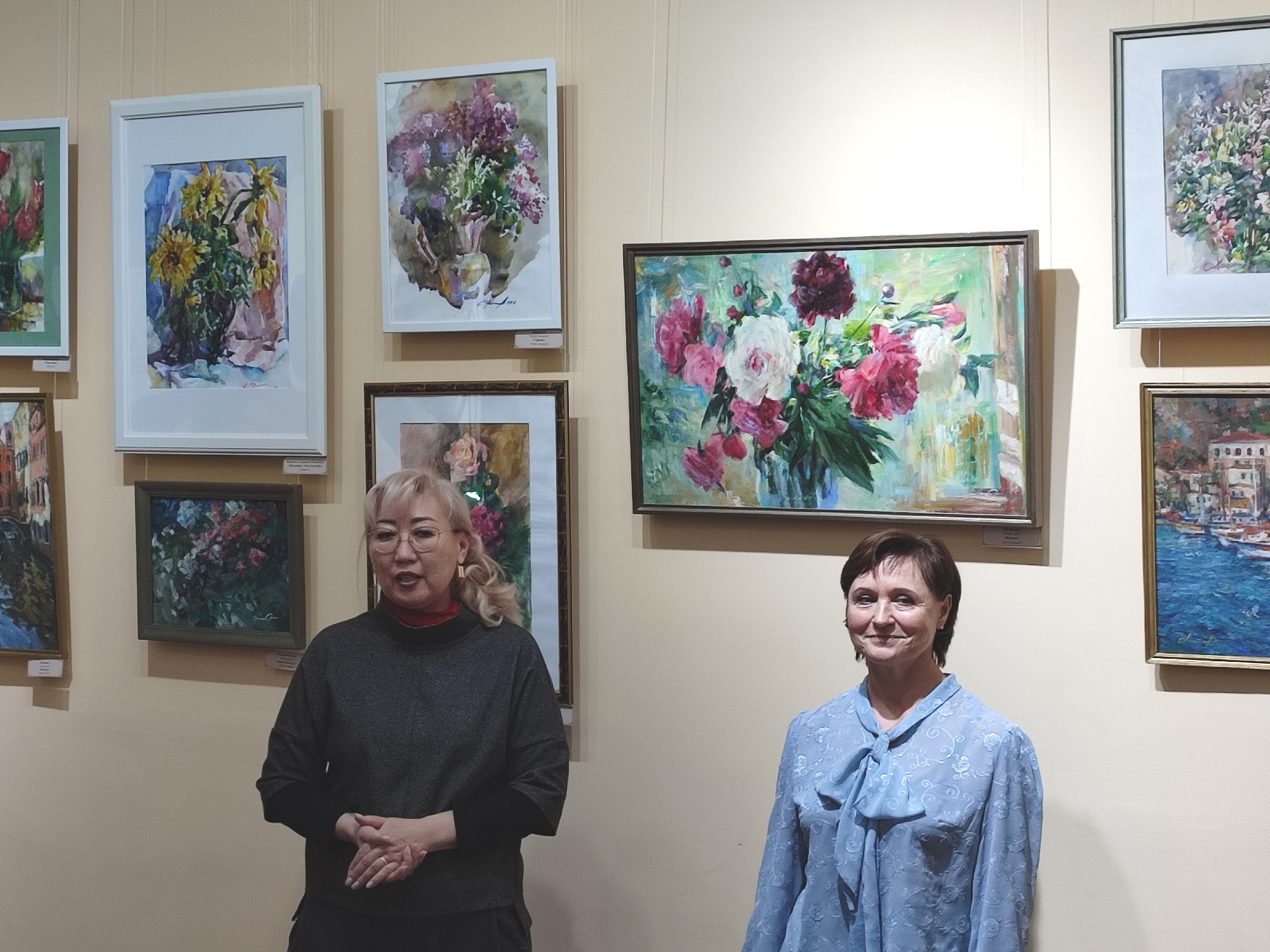 Көрменің ашылу қонақтары: Қ.Х.Мухамадиева, Лисаков қалалық мәслихатының төрағасы мен депутаты, Н.Р.Исмагулова, «Лисаков қаласы әкімдігінің мәдениет және тілдерді дамыту бөлімі» ММ басшысы, Г.С.Нургазина, ҚОӘББ «Лисаков қаласының білім бөлімі» ММ әдіскері, Лисаков бұқаралық ақпарат құралдарының өкілдері, балалар көркемсурет мектебінің педагогтары мен оқушылары, әсемдіті аса қадірлеушілер. Бұл күні гүлдер тек көркем шығармаларда ғана емес, сонымен қатар Светлана Карженкованың таланты сыйлаушы мен шәкірттерінің қолында болды. Көпжылдық ынтымақтастық үшін С.В. Карженковаға алғыс ретінде гүл шоқтарын Лисаков музейінің жетекшісі Ш.Е.Ермағамбетова табыс етті.