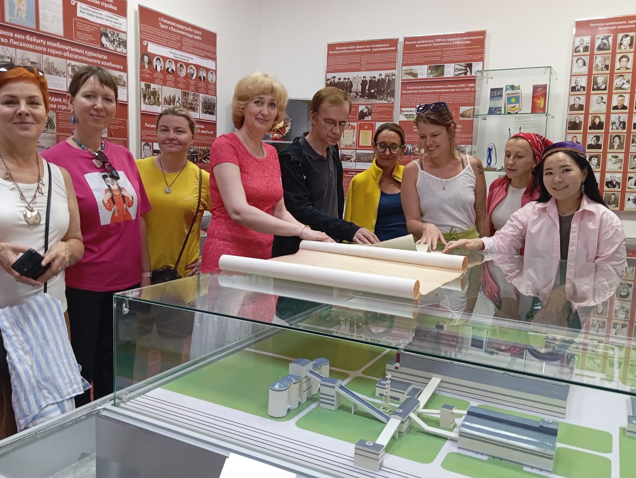 В зале, посвященном истории Лисаковска, Ю.П.Буданова, заместитель руководителя по научной работе музея, рассказала о геоглифе, известном как «лисаковская пентаграмма». Уникальный объект появился в начале 1980-х годов в результате начала строительства пионерского лагеря под названием «Звездочка» для детей работников треста «Лисаковскрудстрой», алмаатинцы увидели генеральный план строительства пионерского лагеря. Яркие эмоции, связанные с проникновением в немецкую национальную культуру, получили туристы благодаря осмотру крупной коллекции предметов немецкой этнографии. Национальные костюмы народов Казахстана и коллекцию одежды советского периода показала Н.Е.Жиляева, первый директор музея. С интересом гости посетили выставку «Рассказывают Победители», посвященную 80-летию Победы, послушали виниловую пластинку с песнями Клавдии Шульженко.