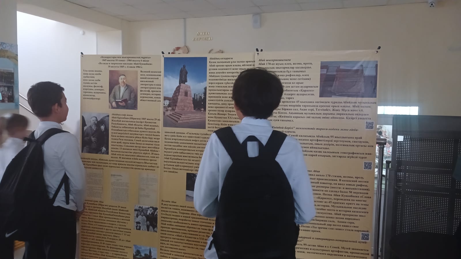 В общеобразовательной школе №4 г.Лисаковска выставлена передвижная выставка «Абай Кунанбаев – гордость народа», посвященная 180-летию великого поэта. На информационных баннерах представлены материалы о жизни и творчестве Абая, его вкладе в развитие казахской культуры, литературы и образования. Размещен QR-код с информацией о музее Абая в Семее. Выставка подготовлена сотрудниками Лисаковского музея истории и культуры Верхнего Притоболья.