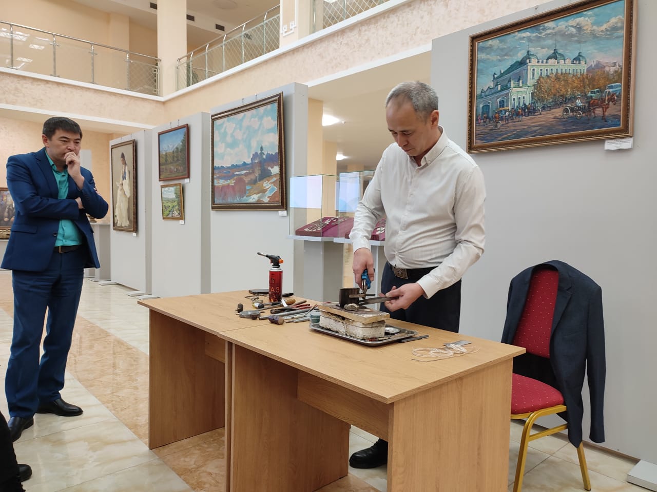 В завершении руководитель учебно-методического центра «Kazmuseum.kz» Нұрсерік Жолбарыс (г.Астана) провел мастер-класс по теме «Проектные работы в музейной деятельности». Ювелир с.Амангельды, Амангельдинского района Хамзин Дастан Мұратұлы представил свои ювелирные работы – женские украшения казахского народа и провел мастер-класс по их изготовлению.