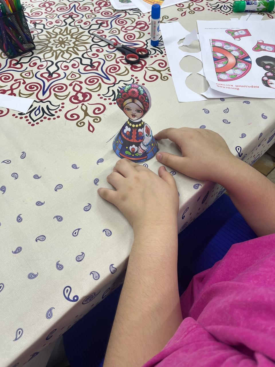 Интерактивная часть занятия включала творческую работу — изготовление бумажных кукол в национальной одежде разных народов. Этот формат способствовал развитию интереса к культурному многообразию, укреплению дружбы и взаимного уважения.