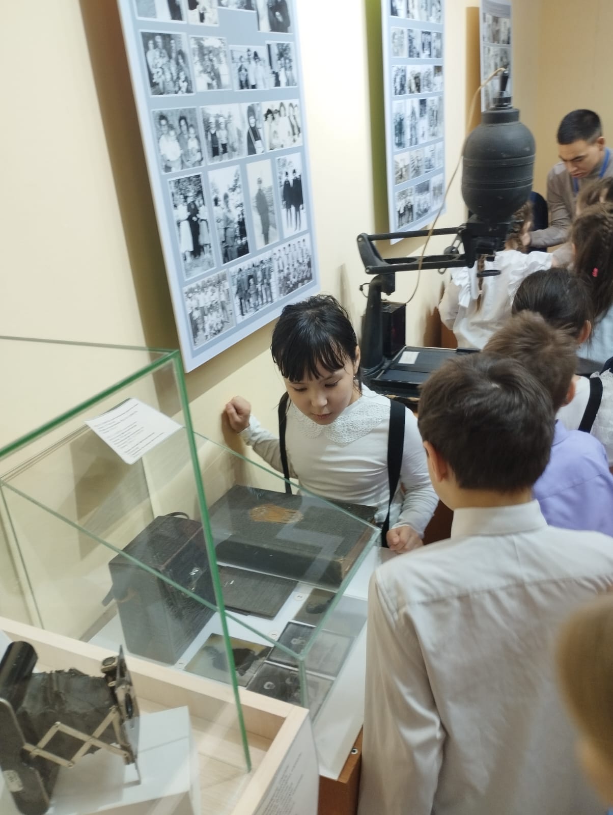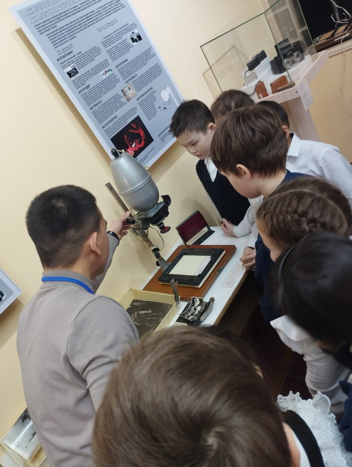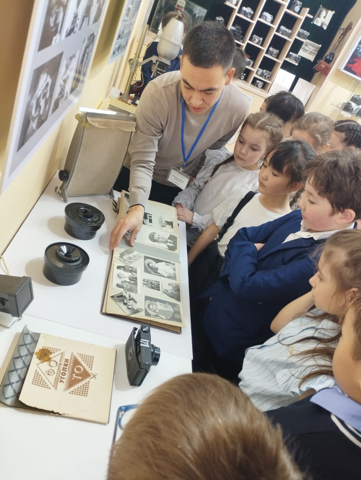 Учащиеся с большим интересом познакомились с экспозицией «Черно-белое волшебство при красном фонаре», посвящённой развитию фототехники и искусству фотографии. Ребята узнали об истории создания первых фотоаппаратов, особенностях проявки плёнки и секретах работы в тёмной комнате при красном освещении.
