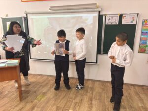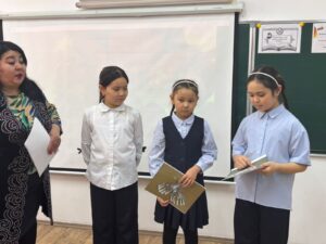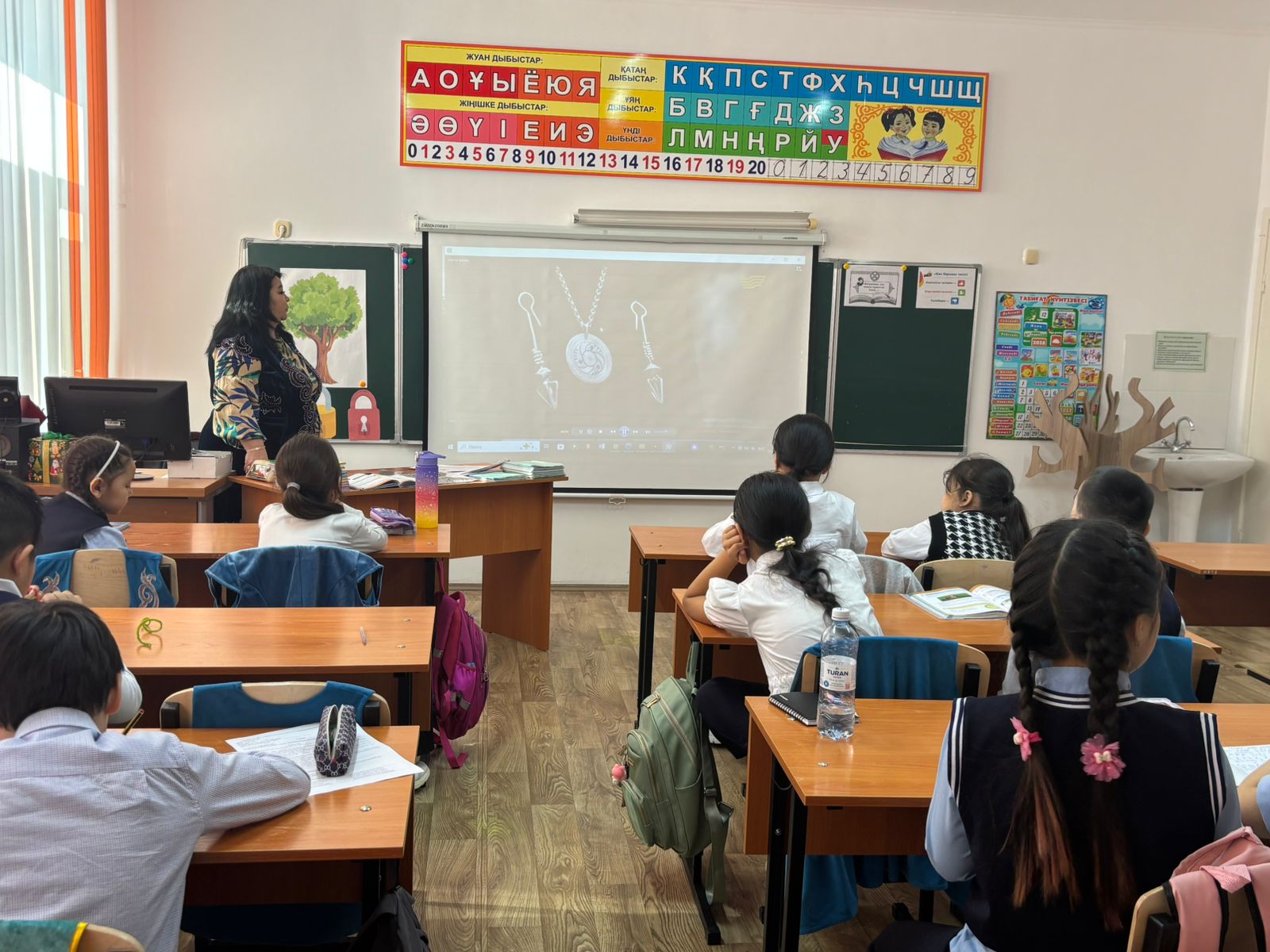 Сабақ соңында ойын өткізіліп, оқушылармен зергерлік бұйымдардың неден және қалай жасалатыны туралы пікір алмасылды.