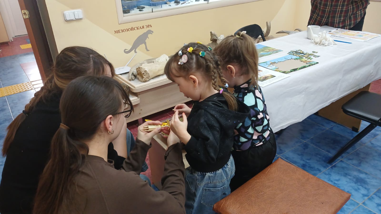 Музей қызметкерлері қатысушылар үшін көптеген қызықты тапсырмалар дайындады: көңілді динозаврларды бояу, қызықты пазлдар, археологиялық жұмыс – «ежелгі» динозаврларды іздеу.