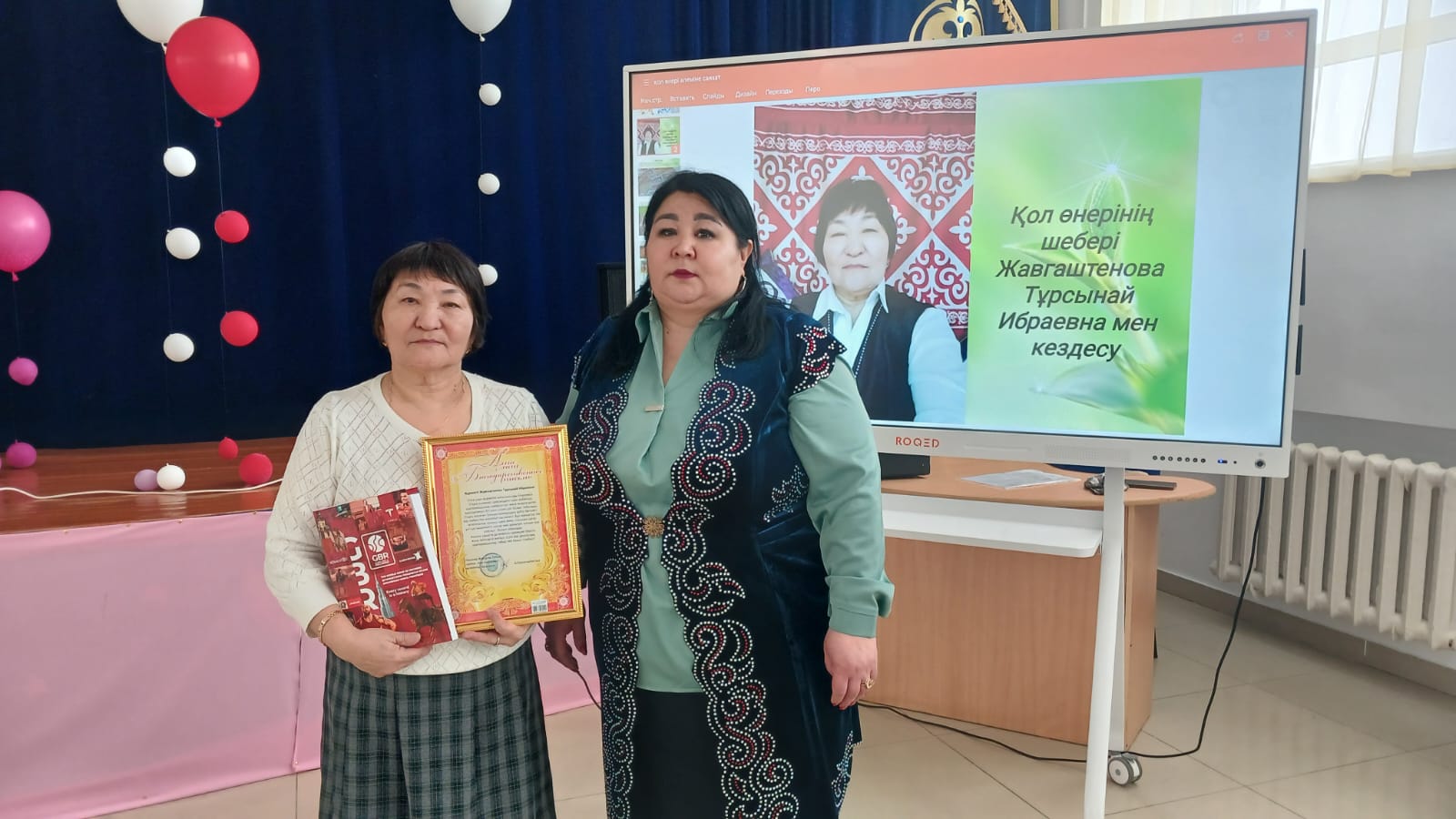 Тақырыпты түсіндіру үшін оқушыларға Қазақ ұлттық өнерінің тарихы мен дамуын көрнекі түрде көрсетуге мүмкіндік беретін презентациялар мен бейнероликтер пайдаланылды