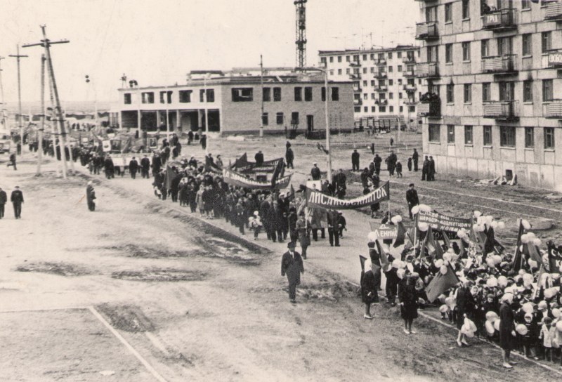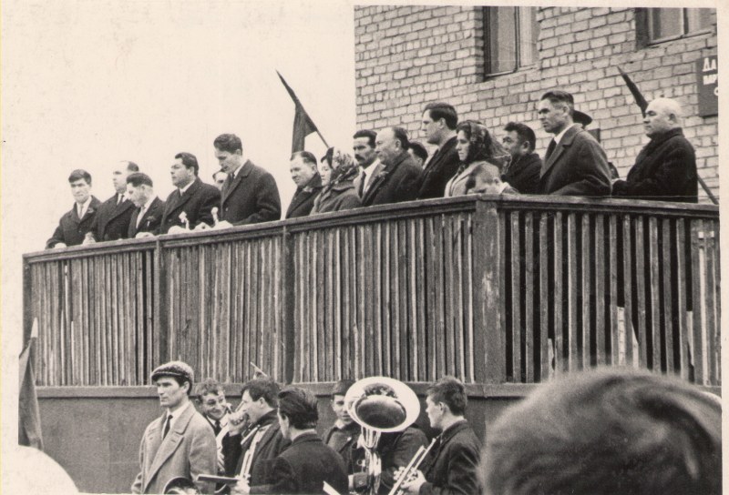 Руководители Лисаковска приветствуют участников первой демонстрации. 1 мая 1968 г.