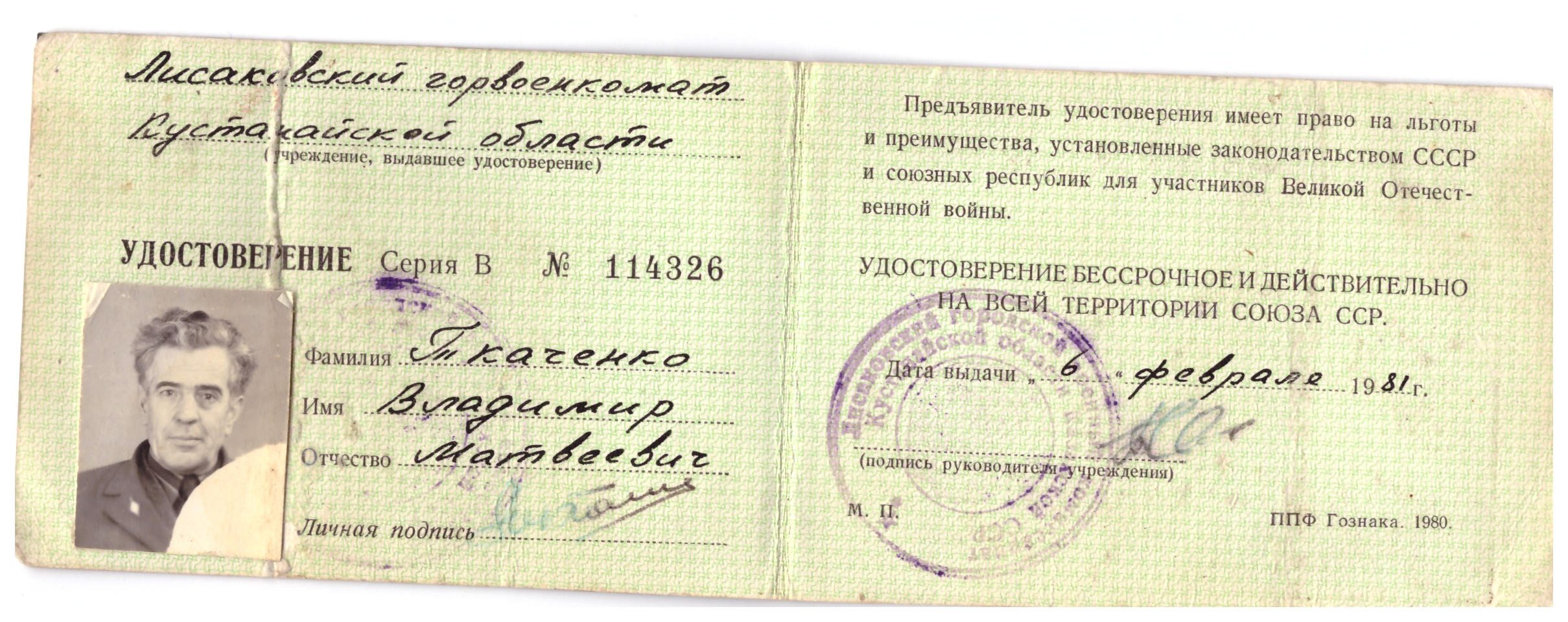 Ткаченко Владимир Матвеевич, Ұлы Отан соғысының қатысушысы
