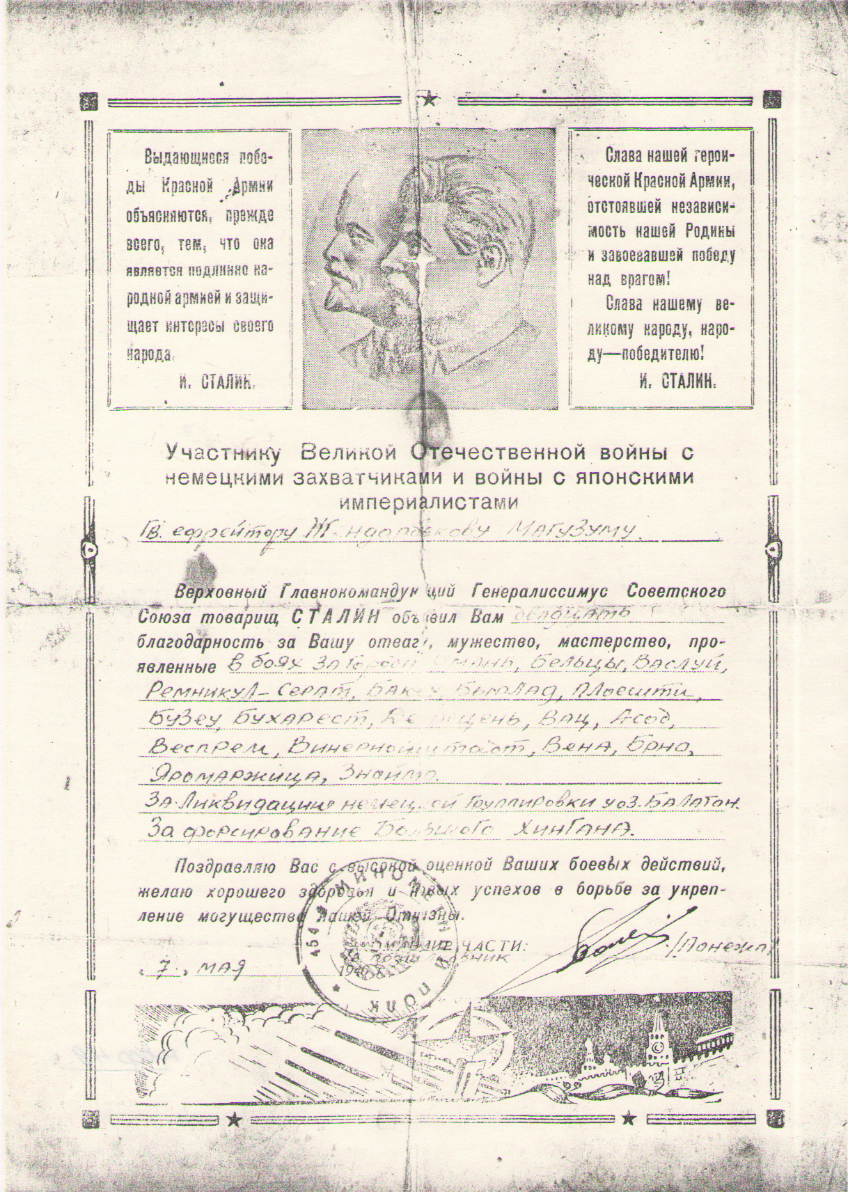 Родился в ауле № 10 Тургайской области. В марте 1943 года был мобилизован на фронт, служил в Сталинградском 5 гвардейском танковом корпусе в качестве старшего разведчика. Участвовал в боях за города: Умань, Бельцы, Васлуй, Баксу, Плоешти, Бухарест, Дебрецень, Веспрем, Вена, Брно. Принял участие в ликвидации немецкой группировки у озера Балатон, участвовал в войне с Японией. Награжден орденом Отечественной войны II степени, медалями «За отвагу», «За боевые заслуги», «За взятие Будапешта», «За взятие Вены», «За освобождение Праги», «За победу над Германией в великой Отечественной войне 1941-1945 гг.», «За победу над Японией».